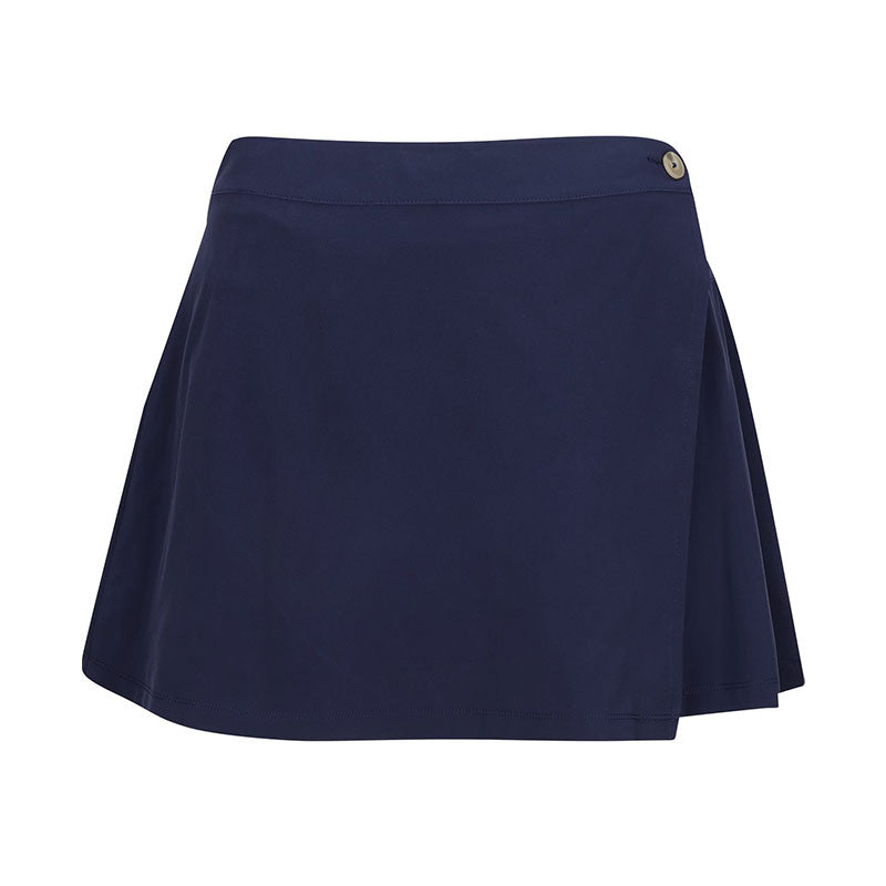 Inspired by fashion, adapted for performance. This faux wrap skirt provides a fashionable and flattering fit with an elastic waistband at back to give you the freedom to move.