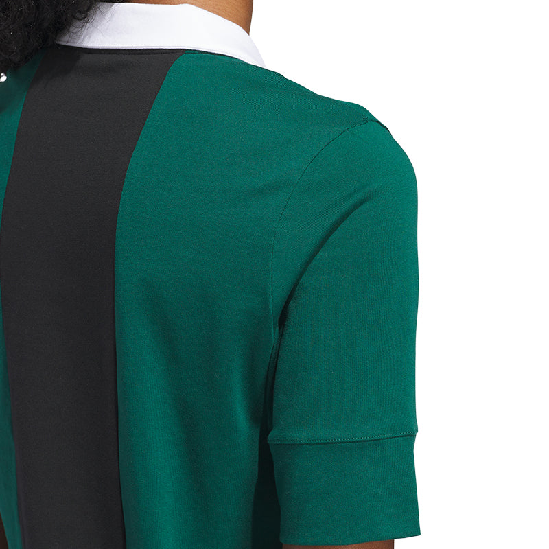 Get more from your outfit in this versatile polo shirt, perfect for the golf course and beyond. Made for any occasion, the soft jersey fabric with stretch keeps you comfortable and free to move whether you're playing 18 or meeting up with friends after a round. Bold stripes and a rugby-inspired contrast collar give it a look that's at once sporty and upscale.