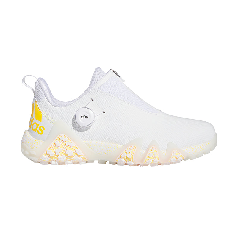 Step onto the course, step up your style and turn up your game with the adidas CODECHAOS22 golf shoes. Every detail of these spikeless shoes is built with a job to do. From the wrap-around Twist Grip outsole to full-length BOOST, they bring swing-boosting traction and a grounded, energized feel to the course. The BOA® Fit System lets you fine-tune the fit with the turn of a dial. A waterproof and stain-resistant upper keeps feet dry and clean so your focus stays on the game. Tour-level performance has never looked this good.